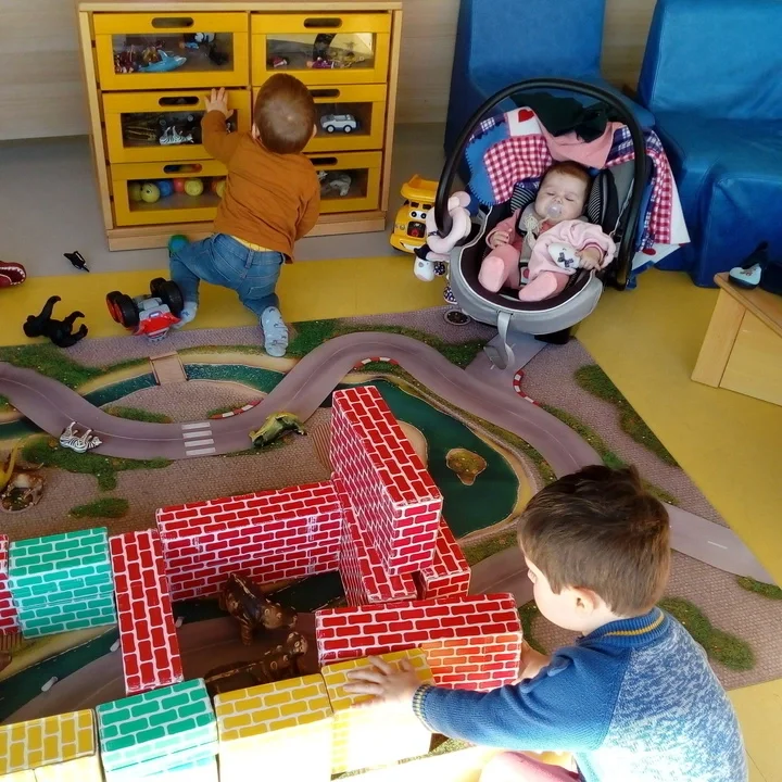 Nous faisons des activités ludiques (balades à pied/poussette, peintures, coloriages, chansons, lectures, cuisine, petites créations pour les fêtes...), aussi des jeux d'éveil adaptés à chaque âge... Nous participons au Bibli-Nounou à la médiathèque et au Relais Petite Enfance, allons régulièrement jouer au parc de la commune, avec les copains que les autres nounous gardent.